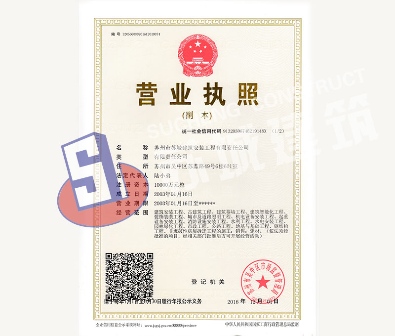蘇州市蘇城建筑安裝工程有限責(zé)任公司是一家建筑業(yè)企業(yè),擁有房屋建筑施工總承包一級資質(zhì),